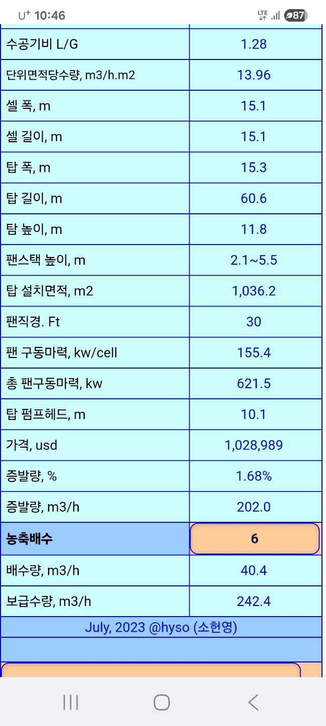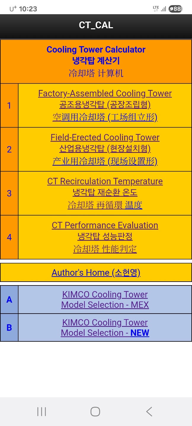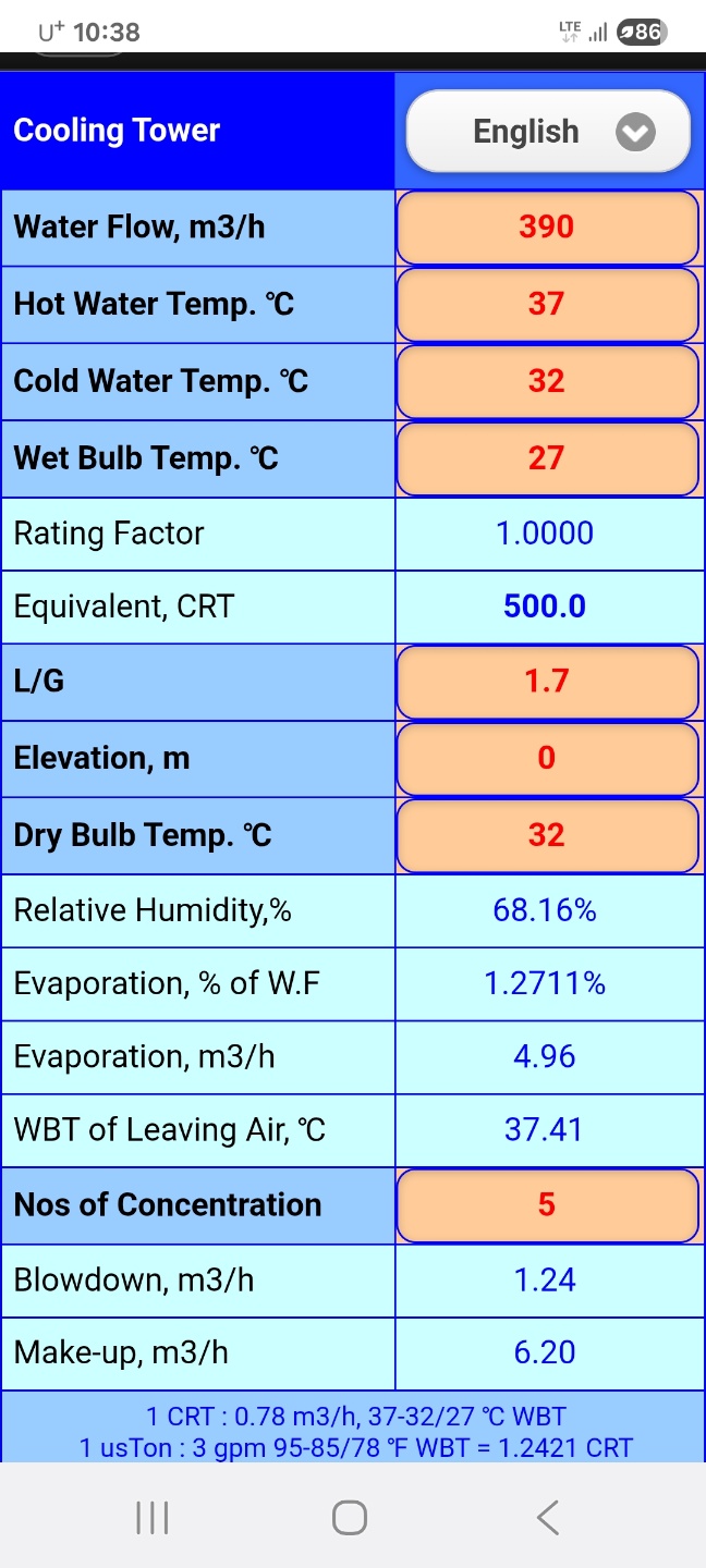 냉각탑 계산기 휴대폰용 Cooling Tower Caculator